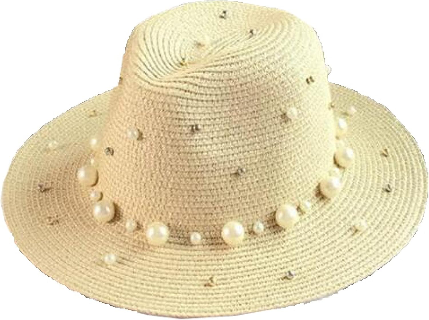 Amazon Com British Style Elegant Pearl Straw Topper Hat For Pretty Girl Ladies Wide Brimmed Sun Visor Hats Summer Church Hat Beige Clothing Shoes Jewelry